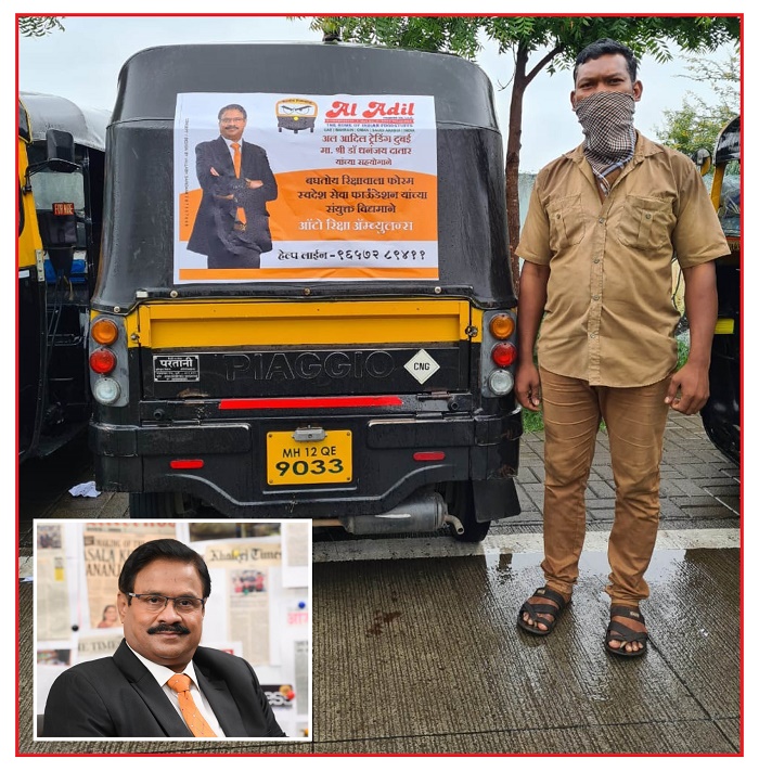 Pune, Maharashtra, India | 16th June 2021: Dr. Dhananjay Datar, CMD, Al Adil Group, UAE, popularly known as Masala King has fully sponsored a novel initiative named ‘Rickshaw Ambulance’ meant for the COVID patients who need oxygen in critical condition. ‘Rickshaw Ambulance’ is a patient transport service jointly promoted and implemented by ‘Swadesh Sewa Foundation’ and ‘Baghtoy RIckshawwalla Forum’, both Pune based NGOs. The service was inaugurated recently here with enthusiasm.